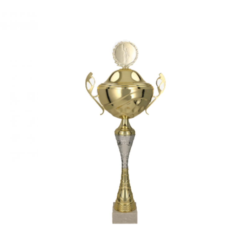 Pokalen findes i 2 størrelser, hvor den store er cirka 38,5 cm, mellem er cirka 36 cm . På marmorfoden er der plads til et skilt med indgravering, hvor der kan være cirka 3 linjer med max 15 tegn på hver linje. Teksten bliver vist i en sort farve og kan kun graveres med almindelige blokbogstaver med skrifttypen Ariel. Udover tekst er der også plads til et emblem som man kan tilvælge. En rigtig fin pokal til mindre eller større stævner, eller til andet brug.