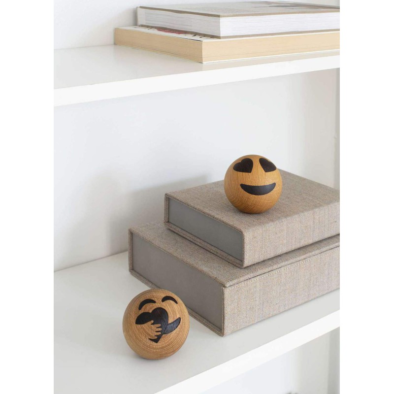 Her kan du få lasergravede en personlig tekst bagpå, som vil fremstå i let sort farve. Vi anbefaler alle vores skrifttyper, dog max 30 tegn fordelt på 2 linjer. Ønskes der et lille symbol, kan det let tilføjes din tekst. Den sjove lille Emotions måler 70 mm i diameter og leveres i æske, så den er klar til at give som gave.