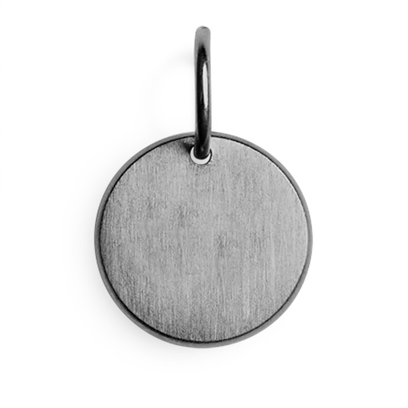Enkelt og stilfuldt Lovetags smykke i oxiderede sølv. Få indgraverede dit eget bogstave og gør dit smykke personligt. Bogstavet vil blive graverede ned i navnhalskæden og fremstå tydeligt. De fleste Lovetags smykker graveres med US block og med forbogstav som på billede, men ønskes der mere tekst gør vi også dette. Teksten bliver sølvfarvet. Lovetags er et sikker hit som gave til den unge pige, til mor eller som et personligt smykke til kæresten Lovetags smykket måler 10 mm i diameter og der medfølger en 42 cm kæde. Leveres i flot smykkeæske så det er klar som gave.