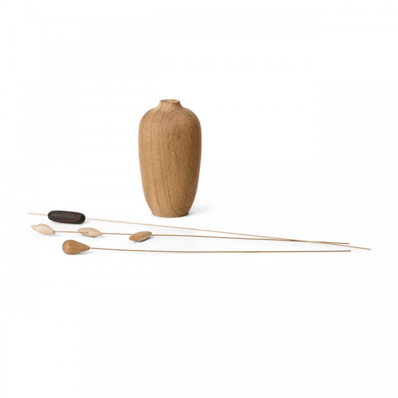 tlf. 20 33 76 60Bloom vase fra spring copenhagen er en fin lille træ vase som kan pynte i et hvert hjem. Den måler ca 12 cm i højden og der medfølger 3 " blomster " hvor der er træ ting monterede på. Her kan du ligeså pynte den op med dine egen tørrede blomster. Træ vasen er ikke egnet til vand og der kan ikke være ægte blomster i vasen. Den er lavet FCS ahorn og FSC termoaske og messing på blomster stilkende.