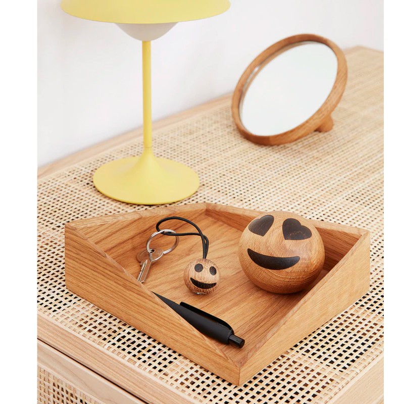 En sjov, glad og omsorgsfuld nøglering med de kendte emotions som vi bruger på chat og sms. Nøgleringen er et unikt håndlavet træprodukt, og der kan optræde variationer fra produkt til produkt. Den leveres med sort lædersnøre og bagpå kan der skrive en lille tekst på ca 10 tegn. Graveringen bliver lasergraverede og fremstå i let sort farve. Her kan alle vores skrifttyper anvendes. Det er vigtigt med en nøglering, når der skal holdes styr på nøgler til hoveddøren, bagdøren, cykel osv. I løbet af en almindelig dag ryger nøglerne op af jakkelommer, tasker og skuffer. Og når vi ser dem så ofte, så gør det jo ikke noget, at nøgleringen er sjov at kigge på. Care kan du også få den smarte emoji Cool som nøglering. Den spreder god energi i din hverdag. Leveres i æske, så den er klar som gave.