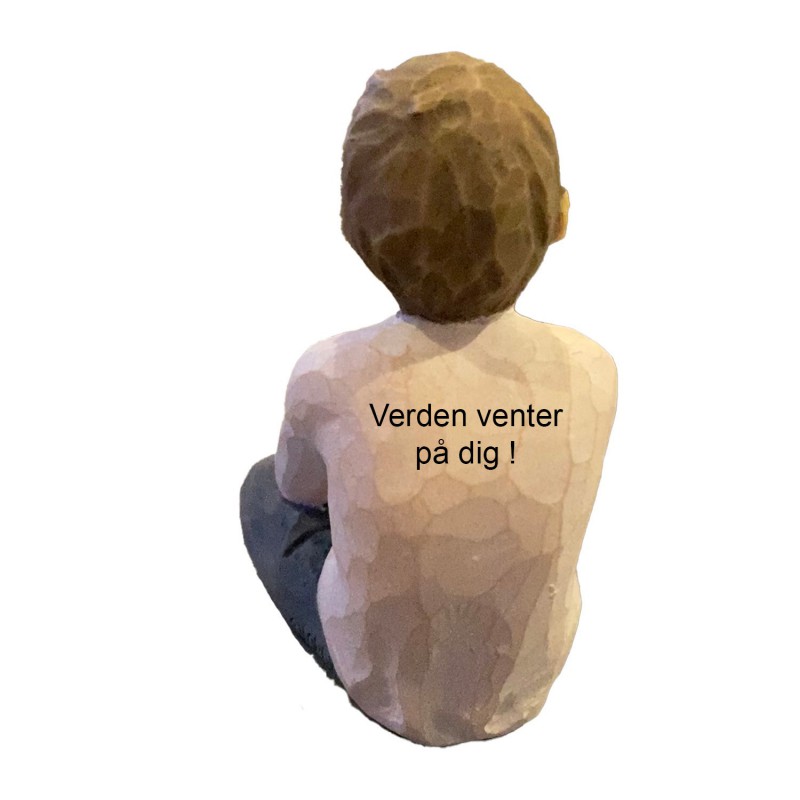 Figuren kan lasergraveres bagpå - teksten vil fremstå i let brun farve og vi anbefaler Ariel som skrifttype. Her kan der ca være 20 tegn fordelt på 2 linjer. WILLOW TREE figur leveres i æske, så den er lige klar til at give som gave.