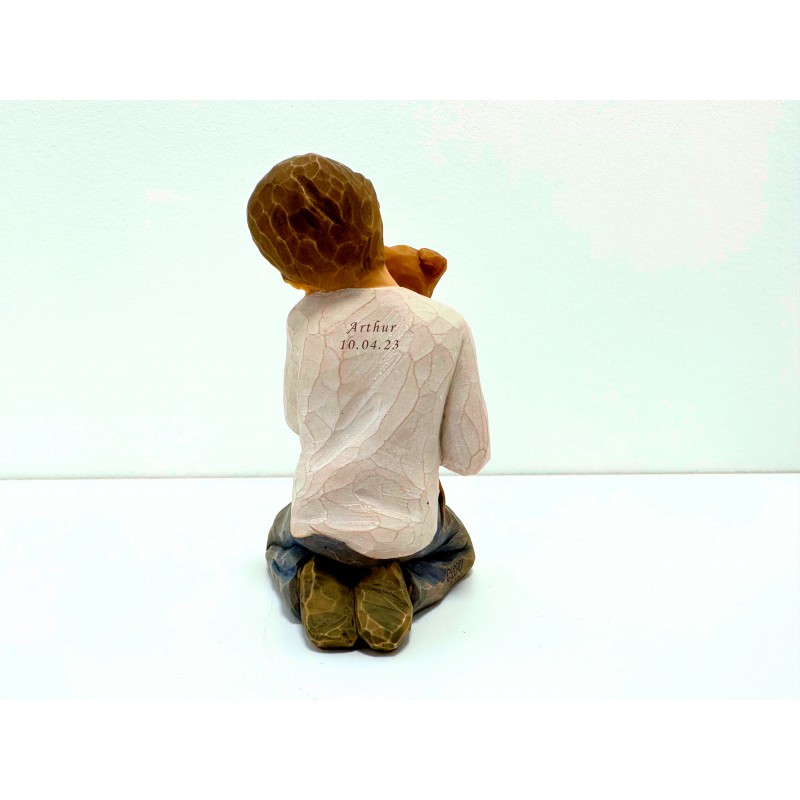 Figuren kan lasergraveres bagpå. Teksten fremstår i let brun farve. Vi anbefaler Ariel som skrifttype. Der kan graveres ca. 20 tegn fordelt på 2 linjer. WILLOW TREE figur leveres i flot æske, så den er lige klar til at give som gave.